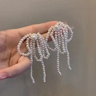 Features: Add a touch of elegances to your look with these handmade earrings featuring a bows and delicate beads. for enhancing any outfit. These meticulously crafted earrings combine the beauty of pearls with a trendy designs, offering a versatile option for accessorizing various outfits. A must have accessory for fashion forward individuals. Designed for women who appreciate contemporary styles, these earrings are suitable for fashion conscious females of all ages. Wear them confidently and make a statement wherever you go. Whether it's a formal event or a casual outing, these long earrings are the choice to complement your overall look. your unique of with these korean earrings. Treat yourself or someone special with these exquisite earrings. Their delicate designs exudes femininity, making them a wonderful any occasion. Specifications: Pearls Weight:About 8g Size: As picture shows Package Includes: 1 Pair Earrings note: 1.Please allow 1-2cm errors due to manual measurement, make sure that you do not mind before you order. 2.Due to the difference between different monitors, the picture may not reflect the actual color of the item.