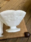 Grapevine pattern milk bowl and matching pitcher Heavy white glass No cracks or chips Comes as a set will not separate