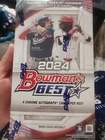 Bowman Best 2024 4 Chrome Autograph Sealed 2024 Bowman's Best Baseball Hobby Box 2024 Bowman& Configuration: 12 packs per box. 5 cards per pack. PRODUCT HIGHLIGHTS - Only the best make the cut in this year’s Bowman’s Best release, spotlighting the game’s top performers. - Collect the entire 100-card Base Set featuring the BEST superstars, rookies, and prospects from around baseball. Box Break: - 4 Chrome Autographs - 12 Base Card Refractor Parallels PRODUCT DESCRIPTION BASE CARDS Parallels - Refractor Parallel – 1 Per Pack - Wave Refractor Parallel – 1:12 Packs - Mini-Diamond Refractor Parallel - #’d to 299 - Purple Refractor Parallel - #’d to 250 - Purple Mojo Parallel - #’d to 250 NEW! - Aqua Lava Refractor Parallel - #’d to 199 - Blue Refractor Parallel - #’d to 150 - Blue X-Fractor Parallel - #’d to 150 NEW! - Green Refractor Parallel - #’d to 99 - Green Mini-Diamond Refractor Parallel - #’d to 99 - Yellow Lazer Refractor Parallel - #’d to 75 NEW! - Gold Lava Refractor Parallel - #’d to 50 - Gold Refractor Parallel - #’d to 50 - Orange Refractor Parallel - #’d to 25 - Black Refractor Parallel - #’d to 10 NEW! - Red Refractor Parallel - #’d to 5 - Red Lava Refractor Parallel - #’d to 5 - SuperFractor Parallel - #’d 1-of-1 INSERT CARDS 1955 Bowman Anime – Limited NEW! - Black Refractor Parallel – #’d to 10 - Red Refractor Parallel - #’d to 5 - SuperFractor Parallel - #’d 1-of-1 2024 MLB All-Star Futures Game – (1:30 Packs) NEW! - Lava Refractor Parallel - #’d to 50 - SuperFractor Parallel - #’d 1-of-1 Strokes of Gold – (1:288 Packs) NEW! Fabled Phenoms – (1:6 Packs) NEW! - Mini-Diamond Refractor Parallel – Limited - Lava Refractor Parallel - #’d to 50 - SuperFractor Parallel - #’d 1-of-1 Impact Players – (1:12 Packs) NEW! - Mini-Diamond Refractor Parallel – Limited - Lava Refractor Parallel - #’d to 50 - SuperFractor Parallel - #’d 1-of-1 Best Ballers – (1:6 Packs) NEW! - Mini-Diamond Refractor Parallel – Limited - Lava Refractor Parallel - #’d to 50 - SuperFractor Parallel - #’d 1-of-1 Bowman Showpieces – (1:18 Packs) NEW! - Mini-Diamond Refractor Parallel – Limited - Lava Refractor Parallel - #’d to 50 - SuperFractor Parallel - #’d 1-of-1 AUTOGRAPHS Best of 2024 Autographs - Refractor Parallel - Blue Refractor Parallel - #’d to 150 - Green Refractor Parallel - #’d to 99 - Gold Mini-Diamond Refractor Parallel - #’d to 50 NEW! - Gold Refractor Parallel - #’d to 50 - Orange X-Fractor Parallel - #’d to 25 NEW! - Orange Refractor Parallel - #’d to 25 NEW! - Teal Refractor Parallel - #’d to 15 NEW! - Black Refractor Parallel - #’d to 10 NEW! - Red Refractor Parallel - #’d to 5 - Red Lava Refractor Parallel - #’d to 5 - SuperFractor Parallel - #’d 1-of-1 - Printing Plates - #’d 1-fo-1 Dual Autographs – #’d to 75 - Gold Refractor Parallel - #’d to 50 NEW! - Orange Refractor Parallel - #’d to 25 NEW! - Red Refractor Parallel - #’d to 5 NEW! - SuperFractor Parallel - #’d 1-of-1 Triple Autographs – #’d to 75 NEW! - Gold Refractor Parallel - #’d to 50 NEW! - Orange Refractor Parallel - #’d to 25 NEW! - Red Refractor Parallel - #’d to 5 NEW! - SuperFractor Parallel - #’d 1-of-1 Quad Autographs – #’d to 75 NEW! - Lava Refractor Parallel - #’d to 50 - Mini-Diamond Refractor Parallel - #’d to 25 - SuperFractor Parallel - #’d 1-of-1 Family Tree Dual Autographs – Varied #ing - Mini-Diamond Refractor Parallel - #’d to 10 - SuperFractor Parallel - #’d 1-of-1 Family Tree Triple Autographs – Varied #ing - Mini-Diamond Refractor Parallel - #’d to 10 - SuperFractor Parallel - #’d 1-of-1 Impact Players Autographs – Varied #ing NEW! - Lava Refractor Parallel - #’d to 50 - Mini-Diamond Refractor Parallel - #’d to 25 - SuperFractor Parallel - #’d 1-of-1 Best Ballers Autographs – Varied #ing NEW! - Lava Refractor Parallel - #’d to 50 - Mini-Diamond Refractor Parallel - #’d to 25 - SuperFractor Parallel - #’d 1-of-1 Fabled Phenoms Autographs – #’d to 99 NEW! - SuperFractor Parallel - #’d 1-of-1 Bowman Showpieces Autographs – #’d to 99 - SuperFractor Parallel - #’d 1-of-1 2024 MLB All-Star Futures Game Autograph Relics – Varied #ing NEW! - Purple Refractor Parallel - #’d to 250 - Blue Refractor Parallel - #’d to 150 - Green Refractor Parallel - #’d to 99 - Gold Refractor Parallel - #’d to 50 - Orange Refractor Parallel - #’d to 25 NEW! - Black Refractor Parallel - #’d to 10 NEW! - Red Refractor Parallel - #’d to 5 - SuperFractor Parallel - #’d 1-of-1