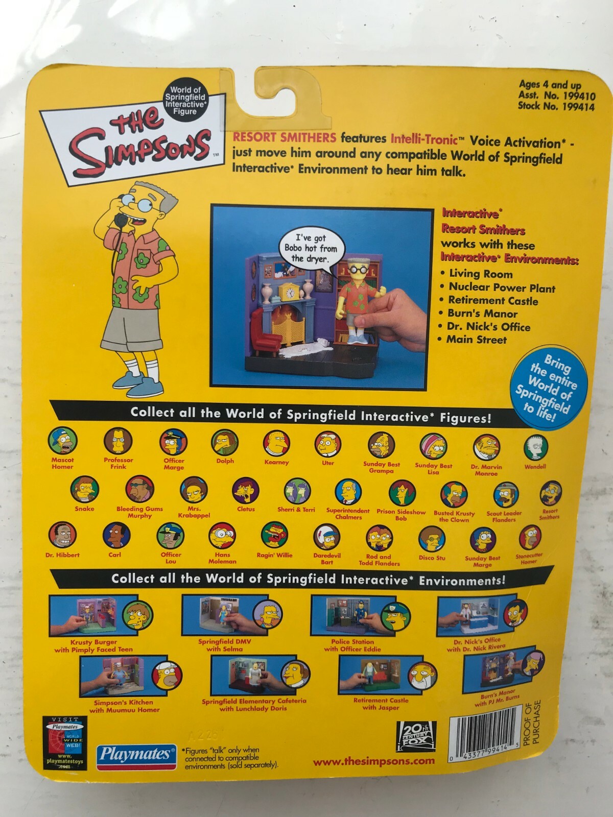 BOXED PLAYMATE INTERACTIVE THE SIMPSONS SERIES 10 RESORT SMITHERS ACTION FIGURE This product data sheet is originally written in English. YOU ARE BUYING A RESORT SMITHERS ACTION FIGURE MADE BY PLAYMATES IN 2003 - FROM The Simpsons INTERACTIVE SERIES EXPERTLY DETAILED AND FULLY ARTICULATED. THIS IS A VERY COLLECTABLE PIECE OF TV MEMORABILIA 4.5 INCHES TALL PACKAGING HAS BEEN OPENED AND THE FIGURE HAS BEEN USED FOR DISPLAY PURPOSES ONLY - IN GREAT CONDITION! ONLY EVER BEEN ON DISPLAY CHEAPEST BUY IT NOW ON EBAY BY FAR! YOU CAN NO LONGER BUY THIS FIGURE IN THE SHOPS SO IT IS BECOMING INCREASINGLY HARDER TO FIND DON'T MISS OUT ON THE CHANCE TO BUY A FIGURE FEATURING 1 OF THE MOST FAMOUS TV CHARACTERS OF ALL TIME CHECK OUT ALL THE OTHER ACTION FIGURES I HAVE FOR SALE IN MY SHOP AT GREAT PRICES, WITH MASSIVE POSTAGE DISCOUNTS YOU ARE BUYING A RESORT SMITHERS ACTION FIGURE MADE BY PLAYMATES IN 2003 - FROM The Simpsons INTERACTIVE SERIES EXPERTLY DETAILED AND FULLY ARTICULATED. THIS IS A VERY COLLECTABLE PIECE OF TV MEMORABILIA 4.5 INCHES TALL PACKAGING HAS BEEN OPENED AND THE FIGURE HAS BEEN USED FOR DISPLAY PURPOSES ONLY - IN GREAT CONDITION! ONLY EVER BEEN ON DISPLAY CHEAPEST BUY IT NOW ON EBAY BY FAR! YOU CAN NO LONGER BUY THIS FIGURE IN THE SHOPS SO IT IS BECOMING INCREASINGLY HARDER TO FIND DON'T MISS OUT ON THE CHANCE TO BUY A FIGURE FEATURING 1 OF THE MOST FAMOUS TV CHARACTERS OF ALL TIME CHECK OUT ALL THE OTHER ACTION FIGURES I HAVE FOR SALE IN MY SHOP AT GREAT PRICES, WITH MASSIVE POSTAGE DISCOUNTS Theme The Simpsons Character Family The Simpsons Brand Playmates Toys Type Action Figure EAN Does not apply