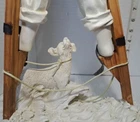 Child Playing Puppy Figure Boy On Stilts With Dog Statue See photos for measurements I believe this a molded resin I consider this to be in good preowned condition Please view all photos zooming in on them as they are part of the description for you to judge condition This is a heavier item so shipping cost reflects this
