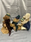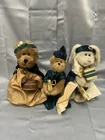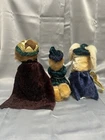 Very Rare set includes: Mary and Joseph are 12 inches The 3 wise men: Gold, Frankenscence, and Myrrh—2 are kneeling each approximately 8-10 inches The Shepherd approximately 8 inches kneeling Babybear and Crib-approximately 6 inches These are in great condition and all come with their tags. Stands included.