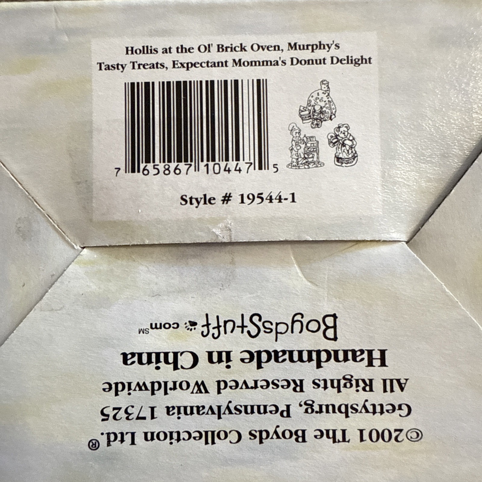 Boyds Bears enthusiasts and collectors alike will appreciate the charming detail and craftsmanship of these miniature pieces from the Boydsenbeary Acres collection. The set includes three figurines: "Expectant Momma’s Donut Delight," "Hollis at the Ol’ Brick Oven," and "Murphy’s Tasty Treats," each showcasing the adorable bear characters in delightful baking-themed scenarios. Crafted in 2001, these small, intricate figurines stand at just 1.25 inches tall and are a perfect addition to any Boyds Bears collection. The set comes in its original opened packaging, and though manufactured in China, the pieces carry the heartwarming nostalgia of Boyds Bears quality and design.
