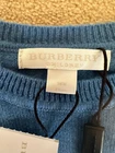This gorgeous boys Burberry jumper is a must-have for your little one's wardrobe. With its classic crew neck and long sleeves, it's perfect for cooler weather. The jumper is made from 100% cashmere, providing a soft and comfortable feel, while the blue colour makes it a stylish addition to any outfit. The jumper is brand new with tags and is 100% genuine Burberry. It's designed for boys aged 18 months and is a pullover style. The material is of high quality, which ensures that it will last for a long time. This Burberry jumper is perfect for any occasion, making it an ideal gift for your little boy. Pet and smoke free home Quick and secure postage
