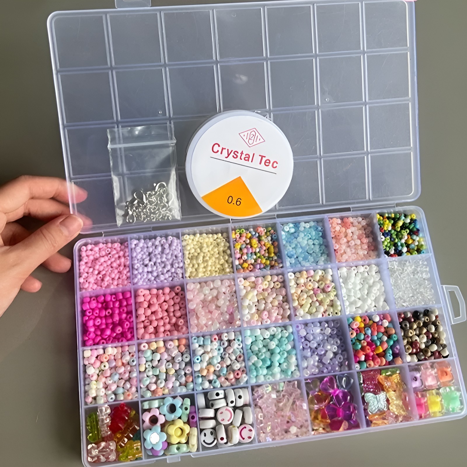 Duo Set Box – Includes Free Elastic Line & 5 Free Accessories – Ready to Ship! You will receive the colors as shown in the photos or Customizable upon request, as shown in the picture Get creative with this complete bead set, perfect for jewelry making or DIY craft projects. This set includes everything you need to start designing right away. What's Included: 1 Duo Set Box 14 Colored Beads (Packaged in individual 10g zip bags for easy pouring) 1 Pendant Tray (14 slots) 1 Elastic Band (Free!) 5 Free Accessories 5 Lobster Clasps (Crab Claws) 5 Chains 10 Stoppers You will receive exactly what you see in the cover first photo. or DIY Wax String Bracelet Kit 9hole – Candle String Set with Beads, Pendants & Box ( shown in the first picture ) or Customizable upon request, as shown in the picture. String Bracelet Kit 10hole set – free DIY elastic string & Box Perfect for beginners and DIY jewelry lovers, this compact set includes everything you need to start creating your own beautiful pieces. What’s Included: 1 S-Set Box with 10 compartments 7 Colored Beads (Packed in individual ziplock bags – 10g each) 1 Pendant with 3 slots 1 DIY Elastic Line Note: Beads are packed in individual zip-lock bags for customers to pour into the box themselves.