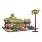 This exclusive collectible illuminated gas station sculpture from The Bradford Exchange features: Evoke the nostalgic feel of classic American road trips with the Route U.S.A. Gas Station Sculpture, a first available exclusively from The Bradford Exchange, Hawthorne Village Division Meticulously handcrafted with artist's resin, this illuminated gas station sculpture is set upon a fully sculpted display base with fueling pumps, vending machines and signage inspired by gas and car service advertisements Lights up! Retro-style, neon-like lighting illuminates around the station and the "ROUTE USA" sign, while the station interior and exterior also lights up Fully sculpted, hand-painted vintage vehicles (which fit in the garage bays) and gas attendant figures are removable, giving you the joy to arrange the scenes to your liking A standing gas sign is posed separately, and has a "weathered" look for period authenticity Vintage-inspired retro-style gas station sculpture makes a fine addition to any 1950s decor Certificate of Authenticity Measures approximately 8-1/2" W x 4-1/2" H x 8" D; 21.6 cm W x 11.4 cm H x 20.3 cm D