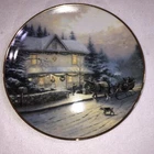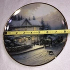 This is a stunning lot of 4 Bradford Exchange decorative plates by Thomas Kinkade. These plates are from his "An Old Fashioned Christmas" series. They date from 1993 and 1994. Included in the lot are: -1993 All Friends Are Welcome, the first issue in the series. The plate is numbered 10236E and has a BRADEX NUMBER of 84-B10-030.1 - 1993 Winter Memories, the second issue in the series. The plate is numbered 16598A and has a BRADEX NUMBER of 84-B10-030.2 -1994 Christmas Tree Cottage, the fourth issue in the series. The plate is numbered 5990A and has a BRADEX NUMBER of 84-B10-030.4 - 1994 The Best Tradition, the fifth issue in the series. The plate is numbered 7739A and has a BRADEX NUMBER of 84-B10-030.5 The plates are edged in a gold trim and measure approximately 8 inches. They are in good vintage pre-owned condition. There are no nicks, chips, cracks or repairs. Gold trim shows little to no wear. These no longer include their original boxes or certificates. This is a plates only listing. Please review and enlarge all photos for additional details, views and measurements. Shipped via USPS Ground Advantage.