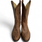 Closure: Pull On Department: Men Brand: Brahma Shoe Width: EEE Pattern: Western Upper Material: Leather US Shoe Size: 10 Accents: Embroidered Features: Comfort Style: Western Model: Brahma 6628 Type: Boot Toe Shape: Almond Toe Color: Brown Theme: Biker, Cowboy, Western