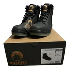 This is a pair of women's work boots made by BRAHMA. They are the Combustion model and have a lace-up closure. The boots feature a steel toe and a flexible midsole. The upper material is leather and the lining material is fabric. The insole material is foam. They are available in black and have a solid pattern. The boots are suitable for workwear and can be worn in any season. The UK shoe size is 5 and the US shoe size is 7. The shoe width is standard.