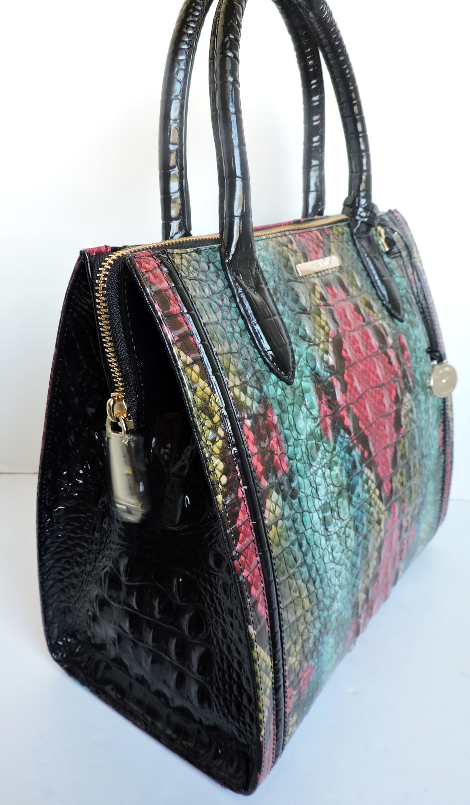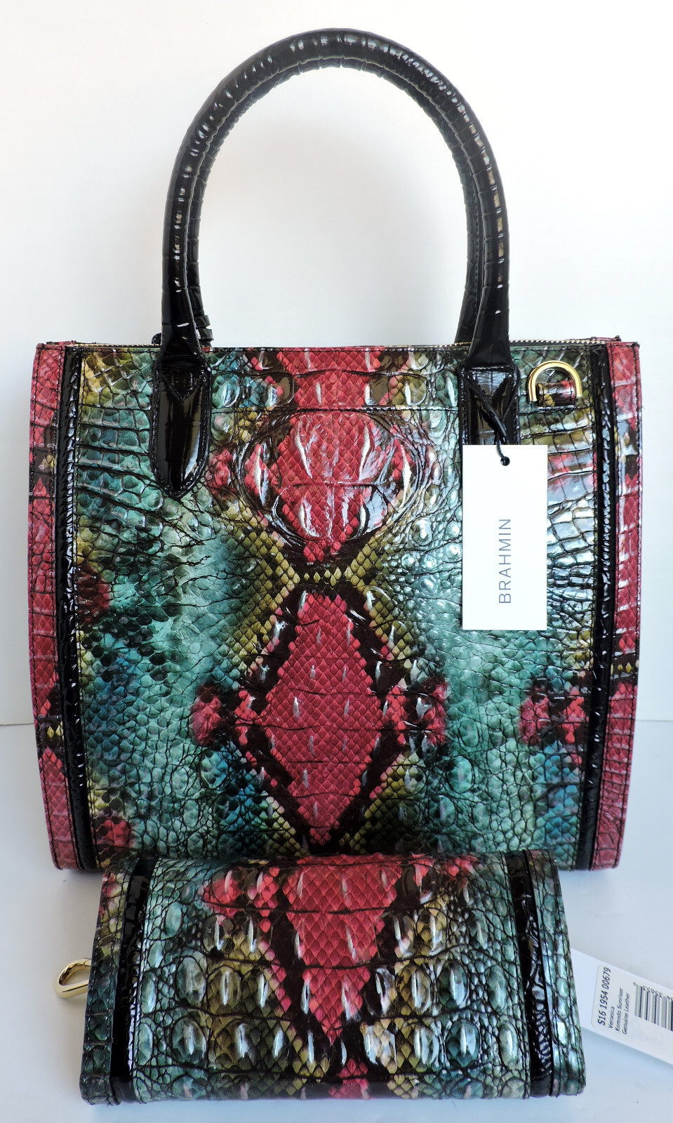 New with Tags, Never Used! Brahmin Caroline Sample Komodo Sunriver Leather & Veronica Wallet. Komodo Sunriver Croc Embossed Leather, Black Croc Trim. Pocket On Back Of Bag With Gold Tone Hardware. Interior Signature Fabric With One Zip Pocket In Back Section With Key FOB Holder, 1 Utility, 1 Pen Pockets, All Trimmed In Leather, Small Zip Jewelry Pocket. Registration Card & Dust Bag Included. Flame Ady Wallet NWT. 12 Credit Card Slots, 1 Id Slot, 3 Paper Money Slots. 7.5"W x 3.5" H x 1" D Purchased From Brahmin Store. Computer Monitors May Vary The Color. Must request RMA within 3 days of receipt of item. Item must be returned with all tags attached in unused condition with all materials sent to receive refund. Please View Store For Other Great Styles ! Be sure to add me to your Favorites List ! Please ask all questions, read all details of listing or request more photos before bidding.