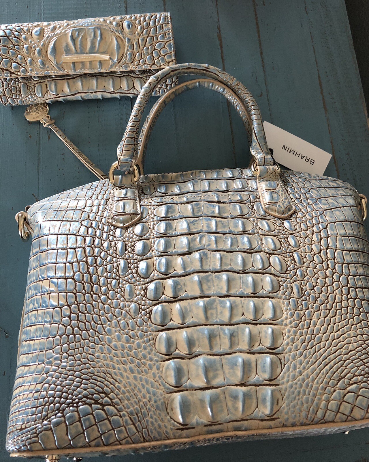 The medium Duxbury and matching Cordelia in this super lush and creamy shade with the blue metallic wash is BEYOND. So gorgeous.