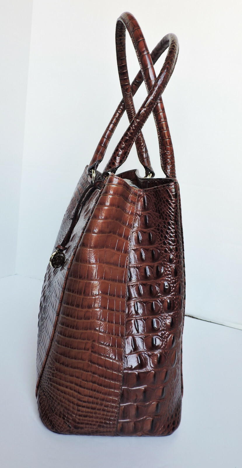 Brand New, With Tags, Never Been Used, Brahmin Joan Tote Pecan Brown Croc Embossed Leather Shopper. Croc Embossed Body, Rolled Double Brown Straps With Slip Phone Pocket On Back Of Bag. Gold Tone Hardware With Magnetic Closure On Leather Strap . Five Gold Tone Feet On Bottom Of Bag. Interior Signature Lining With Center Zippered Section With Additional Zipper Pocket On Back Wall Of Bag,Two Utility Pockets Trimmed In Leather , Small Zipper Jewelry Pocket, Utility Pockets, Two Pen Holders. Registration Card And Dust Bag. Purchased from Dillard's Department Store. Must request RMA within 3 days of receipt of item. Item must be returned with all tags attached in unused condition with all materials returned to receive refund. Photos Taken With And Without Flash, Monitors May Vary Color! View Store For More Great Items ! Be sure to add me to your saved seller list ! Must Contact Within 3 Days Of Receipt For RMA To Return. All Tags Must Be Attached, In Unused Condition With All Materials For Refund. Please ask all questions, read all details of listing or request more photos before bidding.
