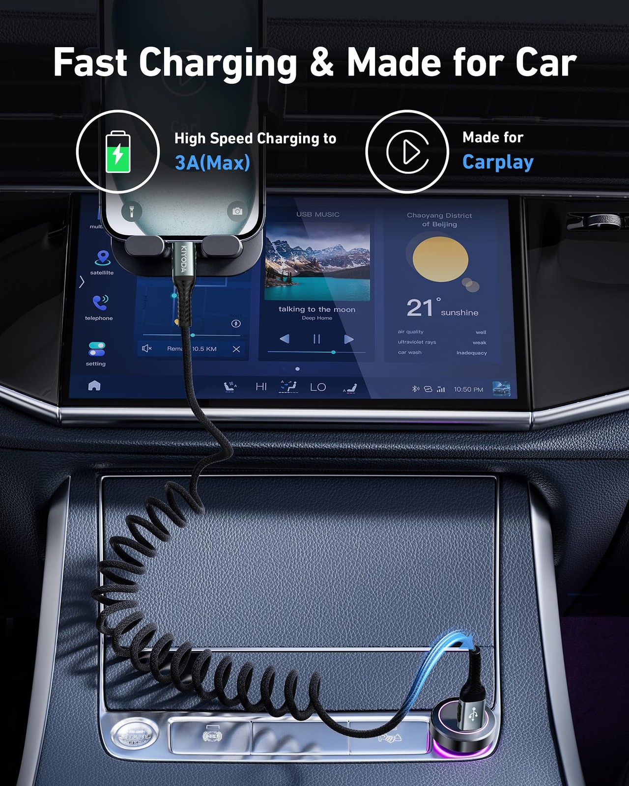 2 Pack Coiled USB to USB C Cable Braided Coiled USB C Cable: This coil cable is designed with retractable spring design, no tangle, no knot, not taking up space and easy to carry and use. The automatic rebound design for car charging saves space on the center console and avoids clutter. It is perfectly compatible with Apple's CarPlay and Android Auto, with fast charging and data synchronization. Stretchable Length and High Flexibility: The natural length is 1 foot, the maximum stretch length is 4 feet, and the comfortable use length is stretched to 2-3 feet, automatically rebounding to the natural state when not in use. The braided cable is made of high-quality nylon, which has better flexibility, wear resistance, easy stretching, fast rebound, and long-lasting elasticity. 66W Fast Charging and Data Sync: The USB C Cable supports PD3.0/QC3.0/4.0 fast charging, up to 66W Max(20V/3A), works well with USB-C Power Delivery Adapters(30W,40W,45W,60W,65W). Up to 480Mbps, fast transfer of images, videos, music and other files, enabling interconnection between cell , laptop, and tablet. Widely Compatible with USB Type C Devices: The USB C cable is perfectly compatible with most USBC devices, Apple phones, iPhone 16 15 series; Galaxy Note series, and Galaxy S series; Google Pixel 6,7,8,8 Pro series; Moto G15, Moto S50 Neo, Edge Lite; LG G5, LG V40 ThinQ, LG V50 ThinQ, LG V35 ThinQ; TCL P318L, 305G, 30 Plus, 30, 30 SE, 30 E; BlackBerry KEYone Bronze Edition, BlackBerry KEY2; OnePlus Phones, etc. What You Will Get:2 Pack USB A to USB C cable and 1 year . If you have any questions, please feel free to us, we will give you a satisfactory solution.