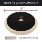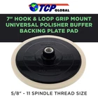 Premium 7" Flexible Edge Polishing Buffing Hook and Loop Backing Pad. This pad has the universal standard rotary polisher's 5/8" - 11 spindle thread size. Maximum pad operation speed 3,000 rpm. The backup pad's hook & loop grip mount backing provides a secure no-slip grip attachment to polishing pads but still allows for quick and easy pad changes. The flexible edge of the pad will enable you to safely navigate curves and contours of surfaces at low or high speeds for fast and effective polishing. Backing plate's durable foam construction and strong center core keep it well-balanced and stable when in use to evenly distribute the pressure. For use with any hook & loop grip mount buffing or polishing pads that allow a 7" backing plate. Includes a pad centering tool