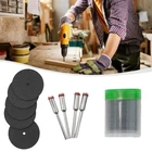 Product Description Feature: *Usage: Use with rotary tools, for cutting metal/plastic/fiber/wood, etc. *Our resin cutting discs set is made by low loss materials with blade, in good shape with no broken edges. *It is , safe and efficient, can be easily attached to the rotary tools. * for cutting all kinds of metal, cuting bolts or screws or removing rusted or stripped bolts and screws by making slots in them. *They come with a 2mm disc for mounting in compatible hobby tools with the same sized chuck. Specification: Product Name: Cutting Discs Material: Resin, Metal Color: Black, Silver Discs diameter:(Approx. ) 24mm Hole: (Approx. ) 2mm Rod Shank: 2.35mm Rod Length: (Approx. ) 36mm Suitable for: Grinding or cutting metal/plastic/fiber/wood, etc. Quantity: 40pcs set Package Included: 36 × Cutting Discs 4 × Connecting Rod Note: 1.Transition: 1cm=10mm=0.39inch. 2. The real color of the item may be slightly different from the pictures shown on website caused by many factors such as brightness of your monitor and light brightness. 3. Please allow slight manual measurement deviation for the data. Payment Payment must be completed within 5 days. If you have any problems about payment, please contact us via ebay message. Delivery details We only ship to confirmed ebay Order addresses. Please comfirm that your Order address is in line with your shipping address. Please kindly note that the c ombined shipping is not provided because the shipping fee is calculated by weight. Also, the each additional item means exactly the the same color and size. It takes about 7 -15 working days to US; about 10-30 working days to other countries. Transit time may be a little delayed because of the bad weather and customs inspection . If you do not receive your item within 30 working days since payment finished, please contact us immediately for further assistance. Contact us We strive for 100% customer satisfaction! Positive Feedback is very important to us. If you have any questions, p lease feel free to contact us via "Ask seller a question" . We will reply your email within 24 working hours.