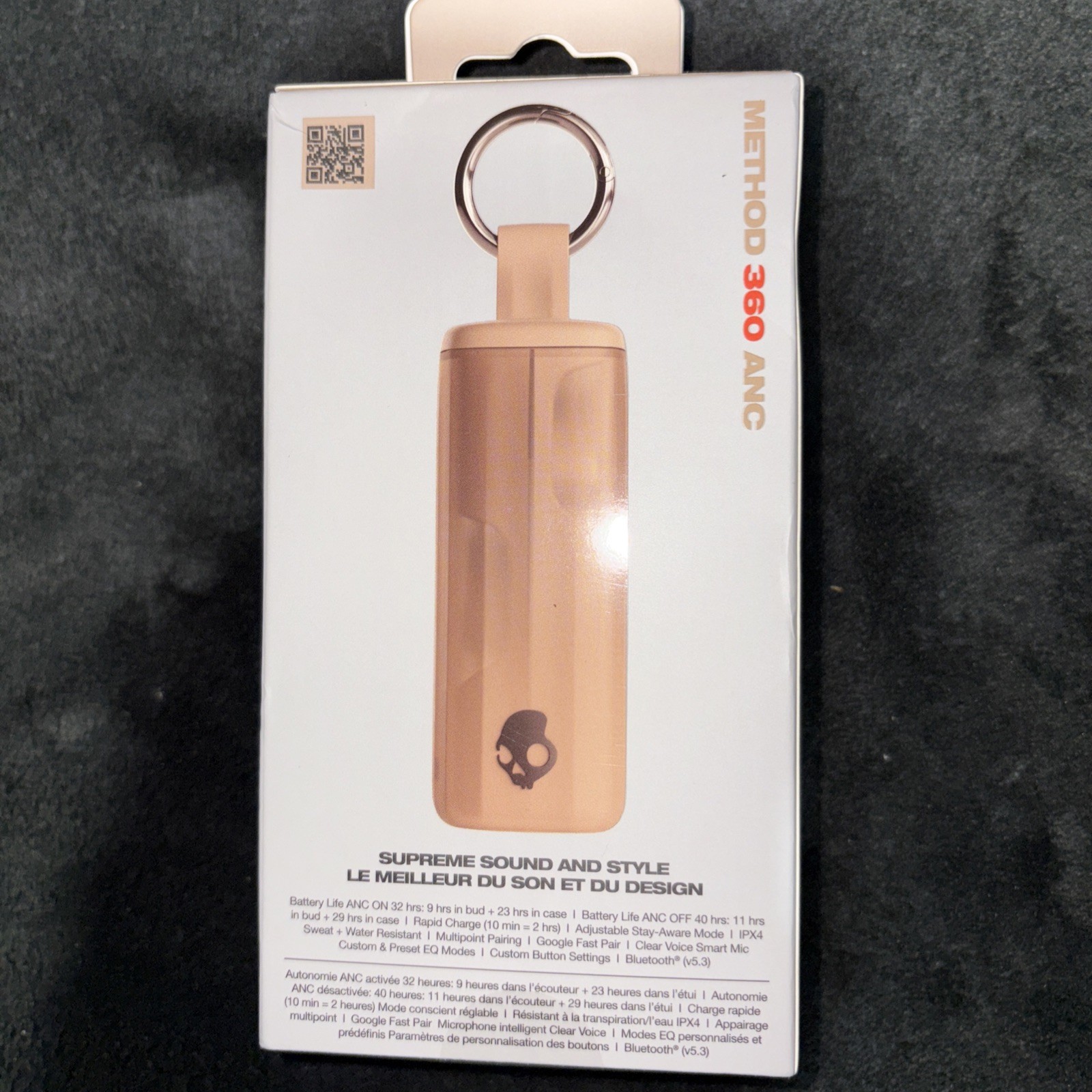The Brand New Skullcandy Method 360 ANC Wireless Earbuds in Primer color by Bose Primer offer a truly immersive listening experience. With Bluetooth wireless technology and a built-in microphone, these earbuds provide convenience and ease of use. The replaceable ear tips and waterproof design make them durable and suitable for various activities. The rechargeable battery ensures long-lasting power, while the sweat-proof feature makes them perfect for workouts. Overall, these earbuds from Skullcandy are a top choice for those looking for high-quality sound and modern features.