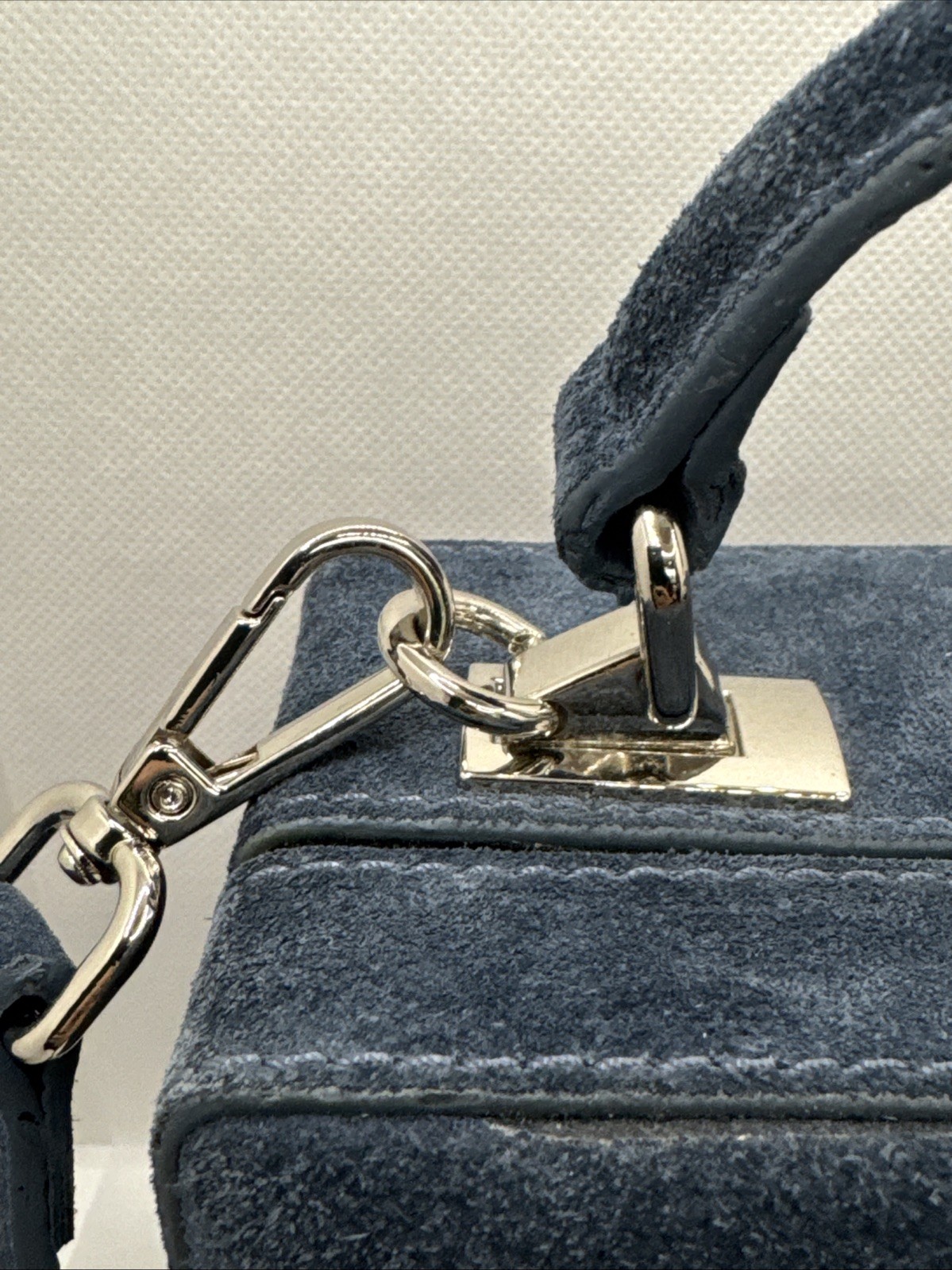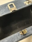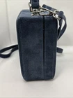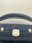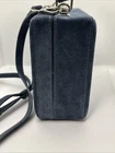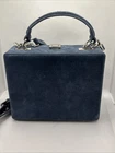 The Brandon Blackwood Suede Trunk Bag is a stylish and trendy handbag perfect for women who appreciate a touch of sophistication. This square-shaped bag features a solid blue exterior made from suede, with silver hardware accents adding a touch of glam. The top handle in blue suede adds a unique twist to the design, while the crossbody style makes it convenient for everyday use. With its compact dimensions of 7.5 inches in width, 6 inches in height, and 3 inches in depth, this bag is the ideal size to carry your essentials while making a fashion statement. Strap has minor wear, please see pictures for detail.
