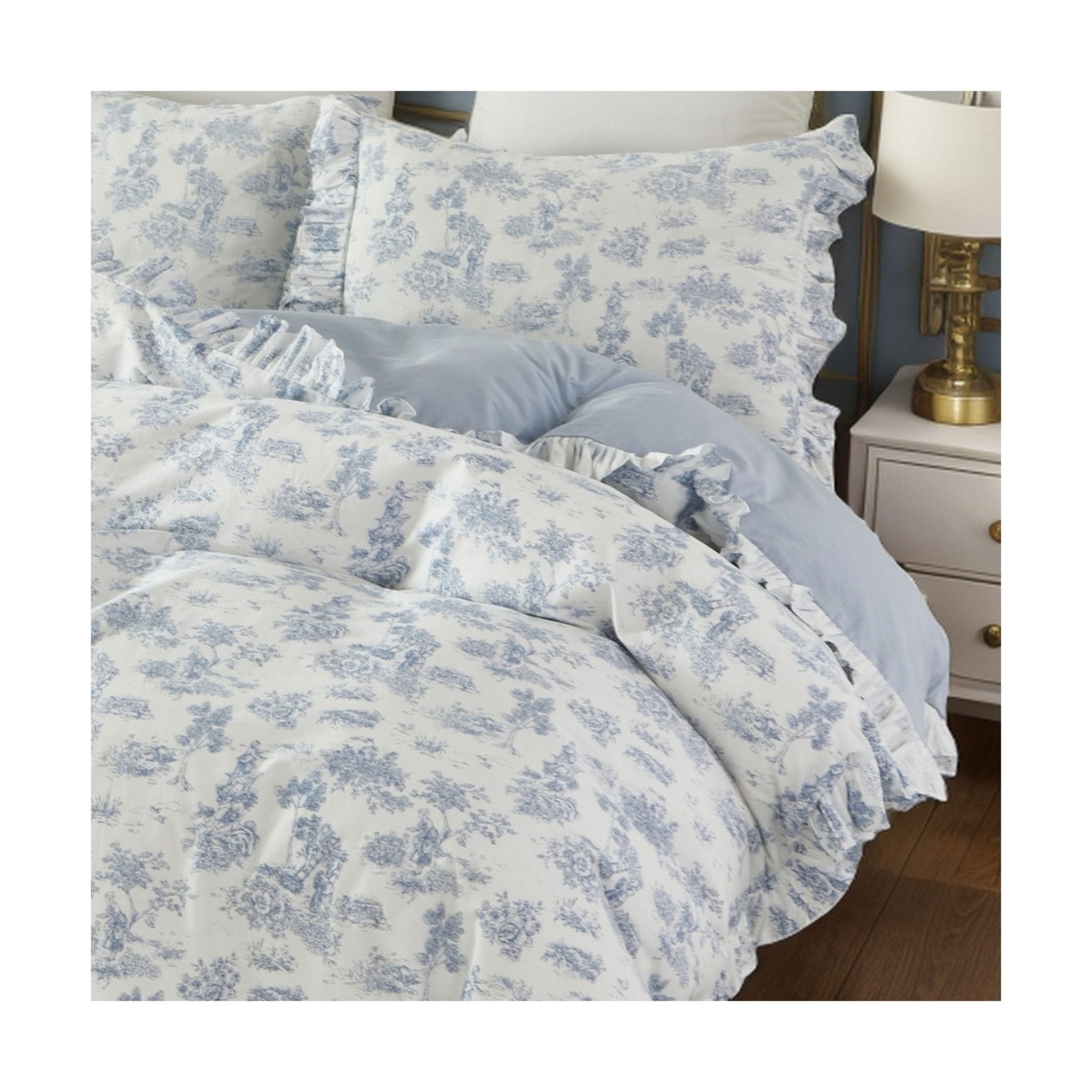 Brandream French Country Toile Queen Duvet Cover Set for Girl Women Bedroom Vintage Blue Toile Floral Print 100% Cotton Duvet Quilt Comforter Cover Pillow Shams Set with Delicate Ruffle Fringe Description Features: Brandream Toile Duvet Cover Set Queen Size - includes: toile duvet quilt cover with Whimsical ruffles, 2* toile pillow shams 100% COTTON - GOTS certified, breathable cotton - the purest layer for babys thin and porous skin - Healthy & Comfortable UNIQUE DESIGN - Brandream French Country Toile Bedding Collection is more than just a set of bedding; it's an invitation to a world where the vintage charm of French Country meets the sweet simplicity of a girl's dreams. As you or your child rests, let the gentle florals and soft blues of this bedding set lull her into a peaceful slumber, surrounded by the love and beauty that this collection embodies. Experience the magic of the Brandream 3 Pieces Vintage Toile Bedding Set for Girls Women, where every detail is crafted with love, and every night is a bedtime story come to life in the softest of whispers and the finest of cotton threads. Product Details: Size: Queen Material: Cotton Color: Blue Toile Pattern: French Country Toile Floral Brand: Brandream Size: Queen Material: Cotton Color: Blue Toile Pattern: French Country Toile Floral Brand: Brandream Number of Pieces: 3 Style: French Country Toile Vintage Farmhouse Garden Flowers Included Components: Duvet Cover, Pillow Sham Thread Count: 400 Product Care Instructions: Machine Wash Theme: Blossom Tree Branches, French Country, Toile, Farmhouse, Botanical, Fantasy, Retro, Vintage, Garden Floral Seasons: Fall, Spring, Summer, Winter Weave Type: Percale Pillowcase Quantity: 2 Unit Count: 3 Set Sham Quantity: 2 Manufacturer: Brandream Package Dimensions: 12.83 x 11.42 x 4.37 inches Item Weight: 4.55 pounds Item model number: BD-Toile Date First Available: August 22, 2024 Delivery We Do Not Ship Outside of the Continental US. Return Policy All items qualify for returns within 30 days of receipt. Feedback We take our reputation seriously, we buy and sell online, so we understand the value of trust. If you are unsatisfied with your order, please contact us and we will work with you to resolve it to your satisfaction.