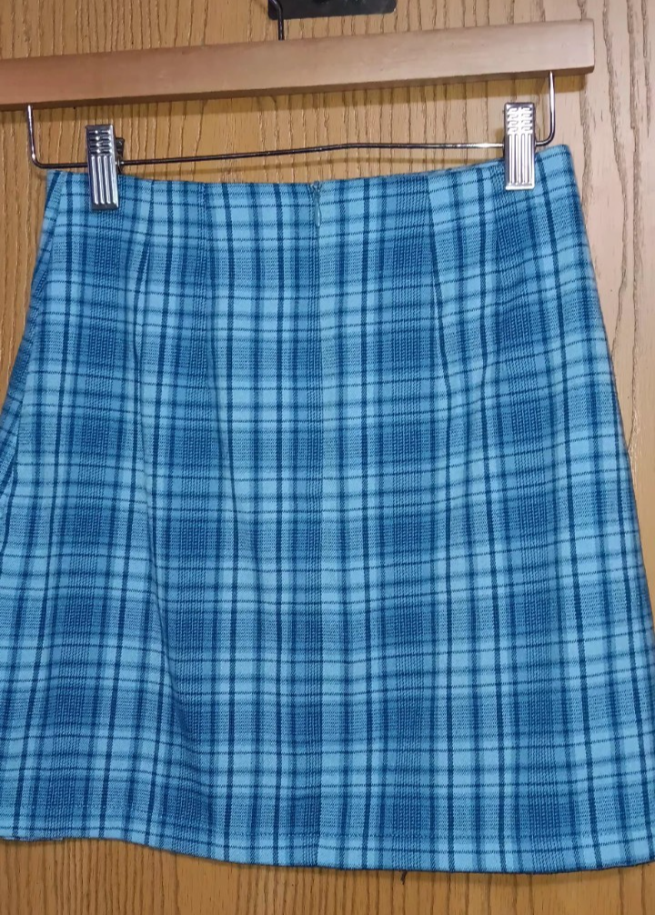The Brandy Melville Women's Mini Skirt in size Small is a stylish and versatile piece perfect for both party and casual occasions. Made from polyester fabric with a blue plaid pattern, this skirt features a low rise, pleated accents, and a slit for added flair. The zip closure and waist extender make it easy to wear, while the mini length adds a trendy touch to your outfit. Whether you're looking for a preppy schoolgirl vibe or just want to add a fun and sassy piece to your wardrobe, this skirt from Brandy Melville is a great choice for any season.