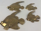 Set of 4 Brass Fish wall hanging. Made in India. Fish measure approx: 7.25" tall x 7" wide. 6.5" tall x 6.5" wide. 5" tall x 5" wide. 4.5" tall x.5" wide. Please see pictures for details as this is part of my description.