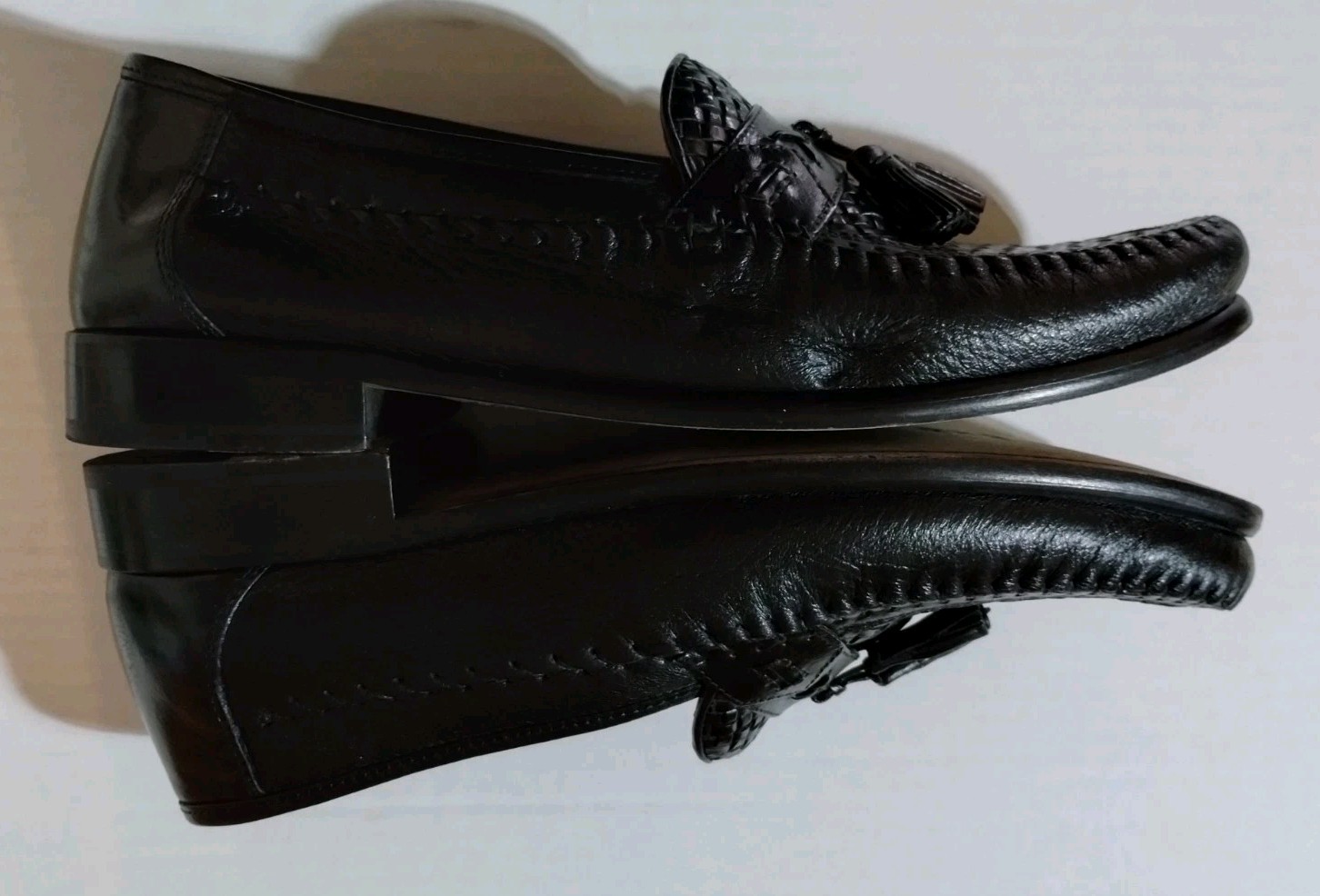 The Brass Boot Walking Gloves Black Woven Tassel Loafers are a stylish and sophisticated choice for men looking for a high-quality slip-on dress shoe. Made with genuine leather and featuring a comfortable cushioned insole, these loafers offer both style and comfort. The round toe shape, tasseled accents, and woven leather uppers add a touch of elegance to any outfit. With arch support and a durable leather outsole, these shoes are perfect for all seasons and occasions, making them a versatile and timeless addition to any wardrobe.