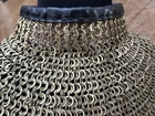 Brass Chainmail Collar, 8mm flat ring dome riveted Neck Protection zig-zag bottom black ring Larp & Reenactment chainmail collar/ Sca Details:- 8mm Flat rings alt Solid Rings Dome Riveted Bottom Zig-Zag black ring in mild steel With 3leather stripes with buckles for adjusting Material: Brass & Mild Steel leather collar Construction with 2/3 Steel rows Ring size: 1.2mm wire - 8mm Finish: Golden & Black Measurements: Upper collar circumference:- 50cm - 55cm Bottom coif circumference:- 120cm -125cm Collar length:- 5cm - 6cm Coif length:- 18cm - 20cm It's standard size for all adults If you want custom size write me a message Please Note:- We Do not Ship on APO / FPO Military Addresses, Po Box address as our Courier partners do not book international parcels on these address. Please note that - depending on your geographic location Shipping carriers or methods may change. * Normal delivery time is 6-8 working days from the time of item dispatch. Please note, delivery time can take more time in some different transit conditions like custom clearance, lack of proper address, address change or some other reasons - Contact Us : If you have any query or problem then feel free to contact us through eBay Message system Or Click on "Ask a Seller" tab below each listing. We reply within 24 hours. Please Note Import Duties taxes, Vat, quarantine fees, address change fees, or any other taxes are not included in the item price or in shipping charges. These charges are the buyer's responsibility. You are requested to please check with your country's custom office to determine what these additional cost or taxes etc. before bidding / buying this item(s) Import Duties or Taxes : We do not have any control on customs charges or custom clearance time or on any other charges; hence, the delivery time is for reference only. Sellers are not responsible for shipping service transit times. Transit times may vary particularly during peak periods. Customs duty fees are normally charged by the shipping company or collected when they deliver the parcels. Feedback : If you feel any problem in product please immediately contact us as we ensure fast and best solution for any problem got in our product !!Thank you so much for Visiting My Shop!! !We welcome you to reach out with confidence!
