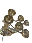 Add a touch of holiday magic to your home with this elegant Brass Reindeer Candle Holder. The nickel finish and intricate antler design make it a perfect addition to any Christmas decor. Use it to hold your favorite scented candle and let the warm glow fill the room. Crafted with care, this candle holder is not only beautiful but also functional. The six-inch diameter makes it perfect for any standard candle, and the sturdy construction ensures that it will last for years to come. Whether you're looking for a thoughtful gift or simply want to add some festive cheer to your own home, this Brass Reindeer Candle Holder is sure to impress.