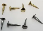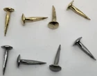 Even though screws, nuts and bolts are found in many antique trunks that have been repaired or restored and in modern trunks, trunk nails and tacks are the way in which they were originally constructed. If you have an old un-restored trunk then you probably a lot of trunk nails or tacks. Trunk nails are more unique because they get bent or curled over on the inside of the trunk making a sturdier piece. Your Choice of Brass Plated Steel or Raw Steel Overall: 1/2 Inches Long Head: Oval Shaped, roughly 3/16 by 1/4" Diameter Sold by the 1/4 Pound (Approximately 254 Nails per 1/4 pound) FK-TKT-8 (D-3610)