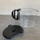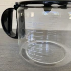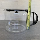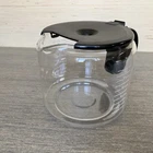 This Braun glass replacement carafe features a handle and a removable lid. Note that there is very minor scratching and signs of wear in some areas, please see photos. No chips, cracks or breaks in the glass.