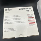 Elevate your coffee experience with the Braun Aromaster 10-Cup Carafe, meticulously designed for compatibility with any 10-cup Braun Aromaster coffee maker. The clear, durable plastic carafe is complemented by a convenient pour spout piece, allowing for easy serving and storage. With a sleek item height of 4.75" and width of 5.75", it's compact enough to fit neatly on any countertop. Crafted with functionality in mind, this carafe boasts a lightweight design and is incredibly easy to clean, ensuring a seamless brewing process. The inclusion of a Flavor Seal Carafe feature guarantees that your coffee maintains its freshness and aroma, giving you that perfect cup every time. With the model number KFK 10L and UPC 07612154462, this replacement carafe is an essential accessory for your coffee lover's kitchen arsenal.