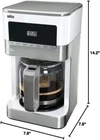 Note: 1)Too coarse a grind, too little coffee, or insufficiently tamping the grounds before brewing can all lead to inadequate pressure for a proper brew. 2)It is important to note that the amount of espresso extracted will vary depending on the grind size and amount and reprogramming may be needed when the size and amount are adjusted The perfect cup of coffee: Braun’s pure flavor technology ensures your coffee is made at the right temperature and brewing time to extract the best coffee flavor and aroma. Expect excellent results, whether you brew a full pot or choose the 1–4 cup setting Wake up to a fresh pot: A programmable 24-hour timer means your coffee will be ready when you are. The auto shutoff feature will turn it off automatically. And the easy-to-read clock is visible from anywhere in your kitchen Rich flavor anytime: The brew pause system lets you pour a cup anytime during the brew cycle without dripping. Plus, the 12 cup flavor carafe seals in the fresh flavor by minimizing air exposure Your coffee your way: A unique water level indicator lets you brew an 11-ounce mug or up to 12 cups of coffee Smarter by design: The sleek, elegant design features a smaller footprint, lower profile, easy-access control panel and convenient cord storage Pure pleasure with every sip: The Braun gold-tone filter, unlike paper, enhances the flavor of your coffee by allowing essential oils to reach your cup. A charcoal filter purifies brewing water, and a cleaning feature can be customized to different water hardness levels PureFlavor Brewing System 24-Hour Programmable Timer 12-Cup Glass FlavorCarafe Braun Anti-Drip System 1000 Watts Braun BrewSense Drip Coffee Maker 12 Cup - KF6050WH Braun’s BrewSense 12-Cup Drip Coffee Maker features a glass FlavorCarafe that seals in the fresh flavor by minimizing air exposure. The unique PureFlavor system makes your coffee at exactly the right temperature and brewing time to extract the flavor and aroma. The moment the luscious aroma of freshly brewed coffee fills the air, you know you’re going to have a satisfying cup of savory goodness. The sleek stainless steel and white finish will look stunning in any kitchen. Features & Benefits The Perfect Cup Of Coffee Braun’s PureFlavor technology ensures your coffee is made at the right temperature and brewing time to extract the coffee flavor and aroma. Expect excellent results, whether you brew a full pot or choose the 1–4 cup setting. Wake Up To A Fresh Pot A programmable 24-hour timer means your coffee will be ready when you are. The auto shutoff feature will turn it off automatically. And the easy-to-read clock is visible from anywhere in your kitchen. Rich Flavor Anytime The Brew Pause system lets you pour a cup anytime during the brew cycle without dripping. Plus, the 12-cup FlavorCarafe seals in the fresh flavor by minimizing air exposure. Features & Benefits Your Coffee, Your Way A unique water level indicator lets you brew an 11-oz. mug or up to 12 cups of coffee. Smarter By Design The sleek, elegant design features a smaller footprint and lower profile, easy-access control panel and convenient cord storage. Pure Pleasure With Every Sip The Braun gold-tone filter, unlike paper, enhances the flavor of your coffee by allowing essential oils to reach your cup. A charcoal filter purifies brewing water, and a cleaning feature can be customized to different water hardness levels.