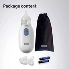 Braun Electric Nasal Aspirator - Mucus Remover, Blocked Nose Relief | Electric A Brand You Can Rely On: From a global brand trusted by families for over 100 years, Braun Electric Nasal Aspirator provides effective congestion relief for babies and toddlers through suction power. Helps Alleviate Sinus Congestion: A gentle and comfortable way to suction mucus from your newborn or toddlers’ blocked nose. Multiple Suction Levels: Choose from two gentle nose suction levels. Start with the lower suction setting and increase as needed Choose From 2 Suction Tips for Best Fit: Includes two easy-to-clean nose tips sizes. One small for newborn babies, and a larger one for toddlers and kids. Easy to Use: Winner of the Red Dot Award for best ergonomic design, our electric aspirator provides fast and gentle congestion relief by simply inserting the tip tightly into your little one’s nostril from any angle. Batteries and storage pouch included.