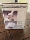 BRAUN HANDBLENDER CHOPPER ATTACHMENT FOR MODELS MR 7/72 IN BOX WITH INSTRUCTIONS. Still Works Perfectly / Only used a couple times. Kept in excellent condition with no chips, cracks or breaks anywhere Original Box and Instructions included