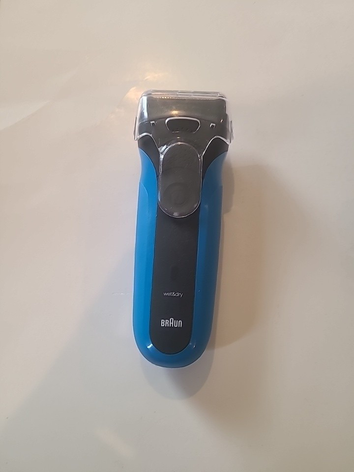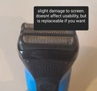 Braun Mens Facial Shaver Beard Trimmer Rechargeable wet/dry. Preowned but very clean. Thouroughly cleaned and tested. In full working oder. The foil head has very slight damage, as seen in pics, but it does not affect usability. The foil head can be replaced if you want to. The charger is in great condition and is clean, and it works. The cover is plastic and, being used, has some minor surface scratches, but it is complete and fits perfectly to protect the shaver when not in use. This unit has been tested, and it works! Make a reasonable offer, and i might just accept it!