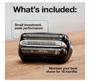 32B Foil Replacement Heads Compatible with Braun Series 3 Electric Shavers black About this item 32B Foil Cutter Replacement Head Compatible with Braun Series 3 Electric Shave Braun Series 3 32B Foil & Cutter Replacement Head, Compatible with Models 3000s, 3010s, 3040s, 3050cc, 3070cc, 3080s, 3090cc This replacement head works with these razor models: 3040s, 310s, 300s, 300, 320, 330, 340, 350, 350cc, 360, 370, 370cc, 380, 390cc, 395cc, 3020, 3020s, 3050cc, 3090cc PEAK. to maintain your best shave, we recommend replacing the shaver head every 18 months,The replacement head get's your shaver back to 100% performance and a closer shave. easily attach your new shaver head in 2 steps QUALITY ,100% made in Germany and compatible with Series 7 electric shavers, Replacing your razor head gives a 25% better shave. For optimum performance; clean regularly. Over 18 months, your Braun shaver will have cut an average of 6 million hairs. A demanding task that gradually wears down the cutting elements and can make shaving less deep and comfortable. Therefore, Braun recommends replacing your shaver's foil and knife block every 18 months so that performance remains at peak level. For a great shave every day. Small investment, peak performance. Within 18 months your Braun shaver will cut an average of 6,000,000 hairs. In accomplishing this substantial task, the cutting parts will gradually wear out and your shave may become less close and comfortable. That’s why Braun recommends changing your shaver’s foil and cutter block every 18 months to maintain your shaver’s maximum performance. For a perfect shave every day. How to replace the shaver head. With earlier models, which have separate foil and knife block, you must do the replacement in two steps. First remove the foil by pressing the release button, if your model provides it, or by simply pulling it toward you. Then rotate the knife block 90° and pull it out, holding it at the ends so as not to touch the blades. To insert the new parts, follow the same procedure in reverse order.