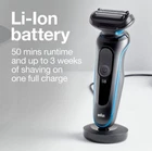 Braun Series 5 5049cs Electric Shaver with Charging Stand, Beard Trimmer,....Description Braun Series 5 electric shaver for men makes shaving easy with 3 Flexible Blades that adapt to your facial contours. The EasyClean system delivers a fast and easy cleaning without removing the shaver head. The Li-Ion Battery provides up to 3 weeks of shaving and a 5 min quick charge. This men's electric razor is 100% waterproof for Wet & Dry use. Compatible with EasyClick system. Beard Trimmer attachment included. Includes: 1x Series 5 razor for men - Blue 1x Beard Trimmer attachment 1x Charging Stand 1x Protective cap 1x Smart plug for automatic 100-240 voltage adjustment 1x Cleaning Brush