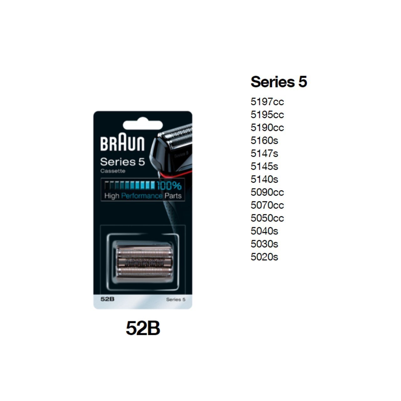 Braun Series 5 Electric Shaver Cassette Replacement 52B contains a replacement shaver cassette that is compatible with Braun Series 5 older generation devices. To ensure an optimal performance, Braun recommends replacing your shaver’s head every 18 months. A routine replacement of the attachable heads is crucial to keep your shaver in peak condition and also to enjoy a comfortable shaving experience, every time. Characteristics Contains: one shaver cassette; Compatible with: Braun Series 5 (older generation). How to use To install the Braun Series 5 Electric Shaver Cassette Replacement 52B gently push the old attachment, insert the new one and press until it clicks. According to the brand’s recommendations, you should replace this product every 18 months.