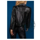 $ 15.84Studded Brown Collar Button Front Genuine Cowhide Leather Jacket for Women