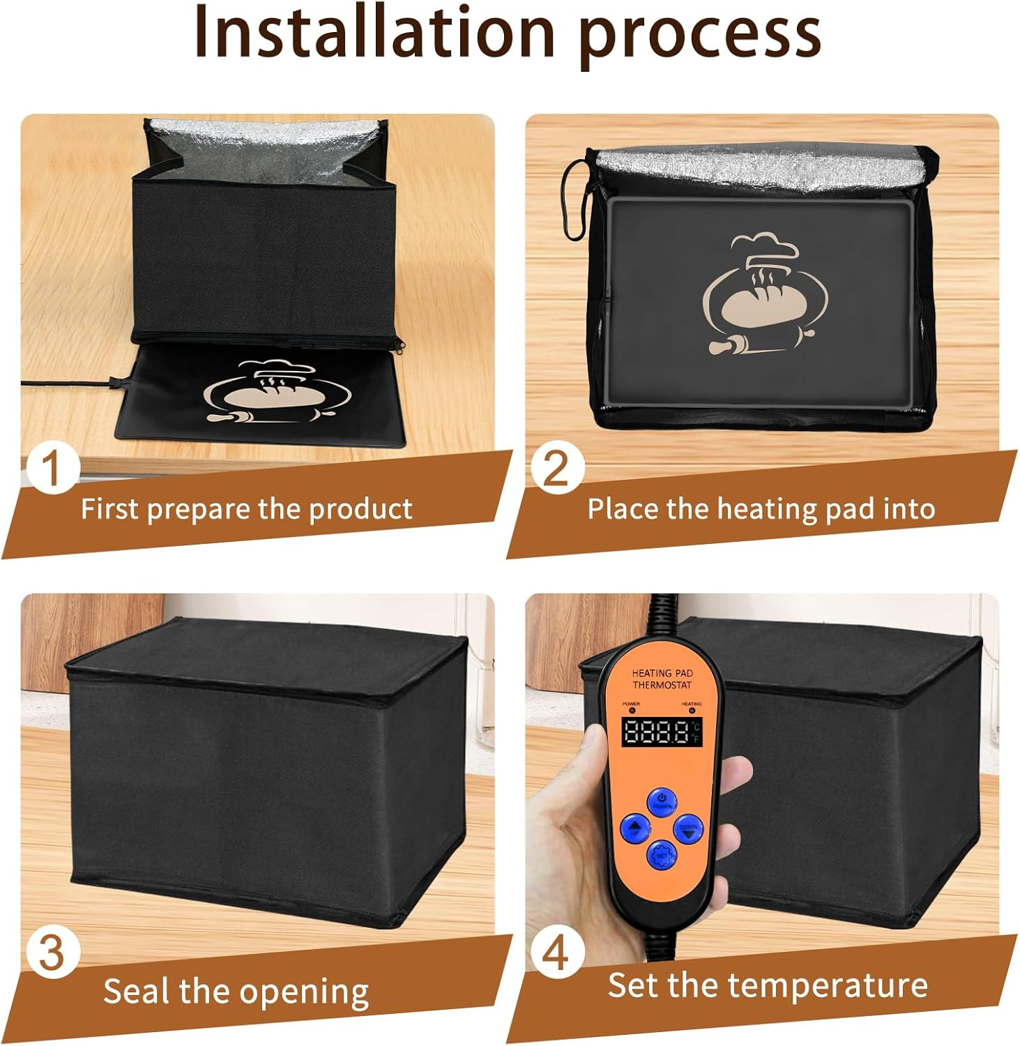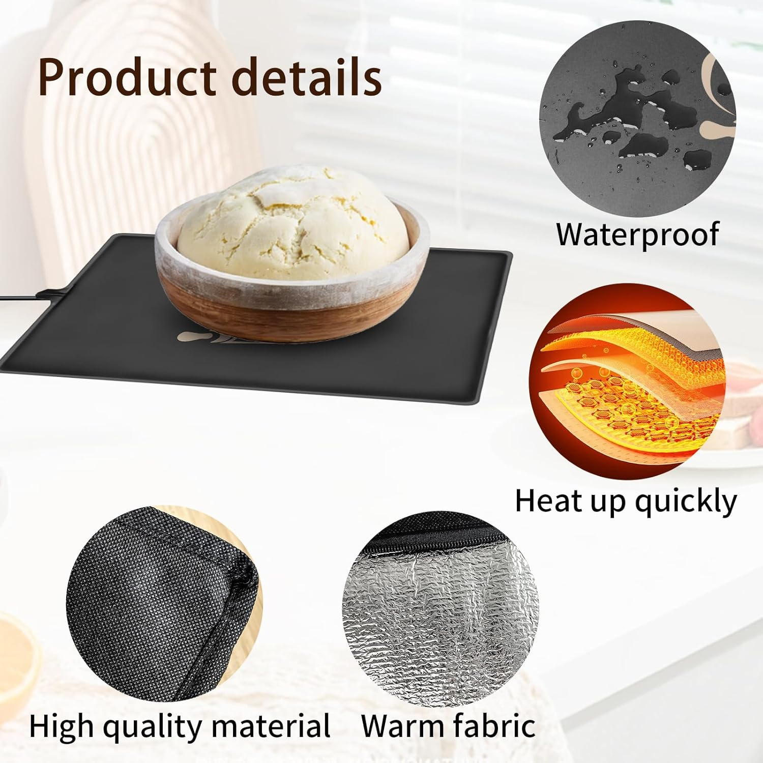 Smart Switch: Smart temperature control adjustment, featuring a thermostat for more precise temperature regulation. Made of thick material with excellent insulation and durability, equipped with a safety switch controller for both aesthetics and safety. Meeting Fermentation Needs: Streamlined, efficient functionality ensures perfect dough fermentation and easy cleaning. Once fermentation parameters are set, no repeated adjustments are required. Despite its simple structure, it delivers reliable and efficient performance. Standard Plugs: US version universal plug, compatible with your voltage. Thick material has good insulation and durability, safety switch controller, beautiful and safe. Note: The bread proofer heating pad will warm up according to the ambient temperature, the warming time will vary and it is not possible to measure the temperature accurately. It is recommended that you set the heating pad to the desired temperature. After Sales Service: Should you encounter any quality issues, please contact us via email. We will provide you with the highest quality after-sales service. Product description
