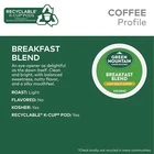 Breakfast Blend Single-Serve Keurig K-Cup Pods, Light Roast Coffee, 96 Count 4 Packs of 24 product STORY: The mountains are a special place. It's where was born. It's where we developed our adventurous spirit and commitment to improving the lands through sustainably sourced coffee. We're driven to bring the world a richer, better cup of coffee. Be bold. Be alive. Grab a cup and get out there. TASTE: An eye-opener as delightful as the dawn itself. Clean and bright, with balanced sweetness, nutty flavor, and a silky mouthfeel. ROAST: Light roast caffeinated coffee and is certified Orthodox Union Kosher SUSTAINABILITY: Committed to 100% responsibly sourced coffee COMPATIBILITY: Contains genuine Keurig K-Cup pods, engineered for SATISFACTION GUARANTEEd quality and compatibility with all Keurig K-Cup coffee makers The mountains are a special place. It's where was born. It's where we developed our adventurous spirit and commitment to improving the lands through sustainably sourced coffee. We're driven to bring the world a richer, better cup of coffee. Be bold. Be alive. Grab a cup and get out there. The Breakfast Blend is as eye-opening and delightful as the dawn itself. Clean and bright, with balanced sweetness, nutty flavor, and a silky mouthfeel. These single-serve K-Cup pods are compatible with all Keurig K-Cup Pod Single-Serve Coffee Makers. Each K-Cup pod is filled with the freshest ground coffee and brews a perfect, great tasting cup of coffee, every time. Certified Orthodox Union Kosher. What does being 100% responsibly sourced coffee mean? Responsibly Sourced means the coffee we purchase is grown and sold in adherence to a credible sourcing program that aligns with our company Responsible Sourcing Guidelines. Our coffee is 100% responsibly sourced. Introducing Recyclable* K-Cup Pods: Simple. Delicious. And now Recyclable. Enjoy the same great-tasting coffee you know and love, and when you’re done just peel, empty and recycle. *Check locally, not recycled in many communities. Packaging may vary. Great Lakes Coffee is a family business that spans generations. Over 60 s ago, they started as coffee farmers. Today, they’re transforming coffee and communities in Uganda by building a sustainable coffee program. And we’re with them every step of the way. We’re supporting their efforts to assist farmers and produce a premium-quality coffee by instituting better tracking practices and creating quality assessment labs right in their communities. Programs like this help raise the value of their coffee and improve the standard of living for farmers like Biira. All while you enjoy the smooth, balanced taste of Breakfast Blend.