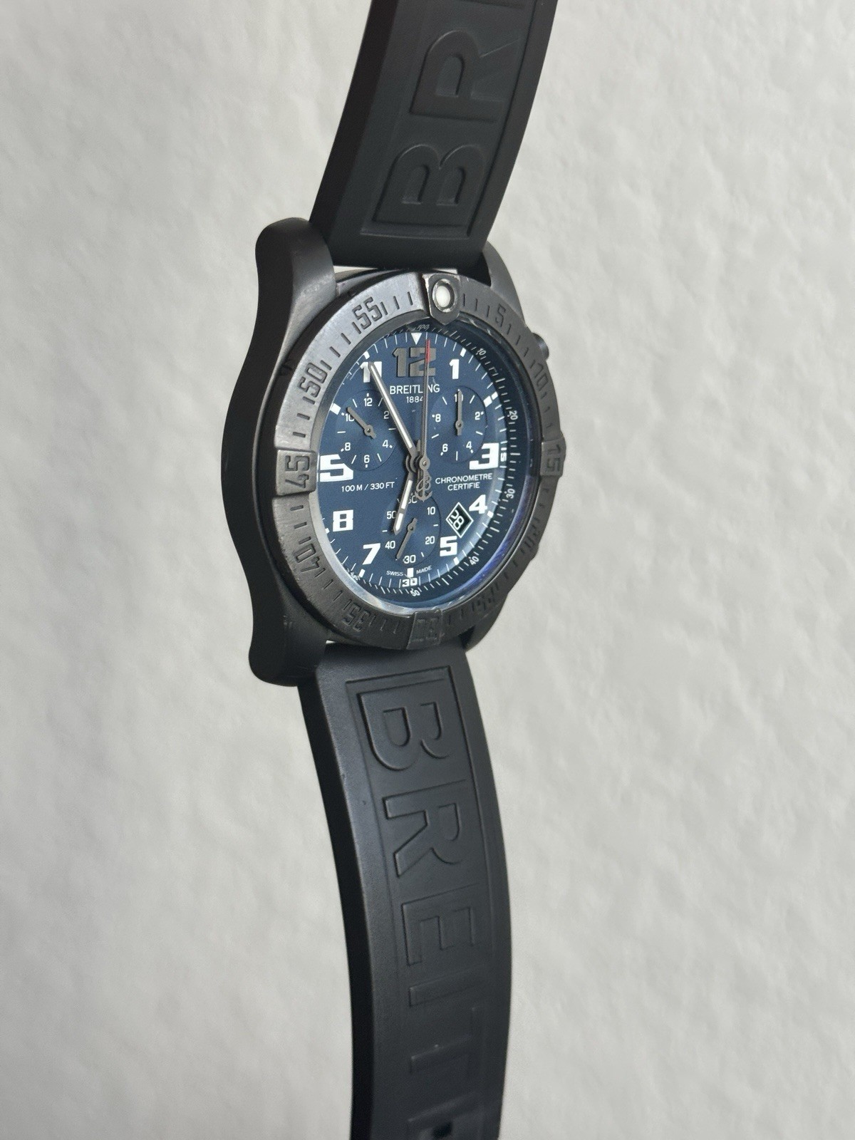 Used and new battery installed, in good/fair overall cosmetic condition, The 1/10th second dial does not work, watch maker told me the fix would be between $200-$600 Bezel does not rotate smoothly (rotates both ways) Cosmetically otherwise has some marks in various areas - watch face has what looks like a small scratch on the underside of the crystal (seen next to the word "Swiss" ) case has some minor scratches around the edges, Band has some wear and tear as seen in pictures Watch otherwise runs and keeps good time, Comes with only watch pictured, no box or papers If you like this watch and know it, then you know how much it retails Also FREE SHIPPING All inquiries are welcome