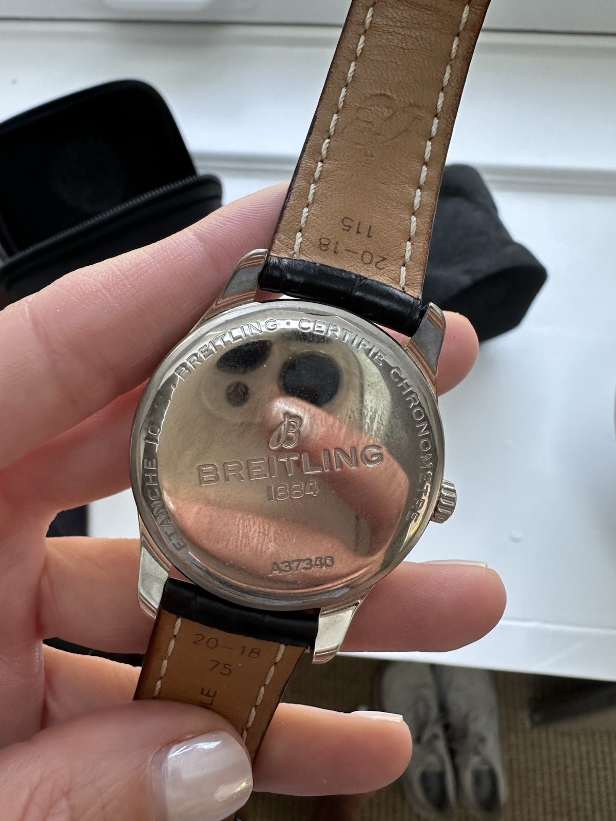 BREITLING Premier Automatic 40 Silver Dial Black Crocodile Leather Strap Watch