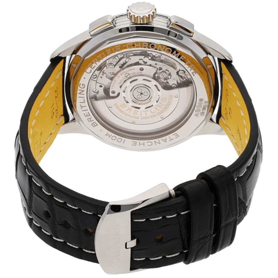 AB0118371B1P2 New Breitling Premier B01 Chronograph 42 Men's Sport Watch - With Manufacturer Serial Numbers - Save Off The Manufacturer Retail Price of $8,950 - Swiss Made - Black Dial - Index Hour Markers - Polished Stainless Steel Bezel - Date Feature - Chronograph Feature Large Central Chronograph Second Hand 30 Minute Counter Sub-Dial at 3 O'Clock - Small Seconds Sub-Dial at 9 O'Clock - Tachymeter Scale Feature - 70 Hour Power Reserve - Self-winding Automatic Chronometer Movement COSC Chronometer Certified - Breitling Caliber 01 - Vibrations Per Hour: 28,800 - Jewels: 41 - 3 Year Warranty - Guaranteed Authentic - Certificate of Authenticity - Manufacturer Box & Manual - Polished Stainless Steel Case - Black Leather Strap with Pattern - Cambered Scratch Resistant Sapphire Crystal Glareproofed on Both Sides - 100 Meters / 330 Feet Water-Resistant - 42mm = 1 5/8" Case, 7" Adjustable Strap - Case Thickness: 13.65mm - Inlet Size: 22mm - Fixed Bezel - Sapphire Crystal Exhibition Case Back - Luminescent Hands - Push & Pull Crown - Screw Down Case Back - Stainless Steel Tang Buckle ;;