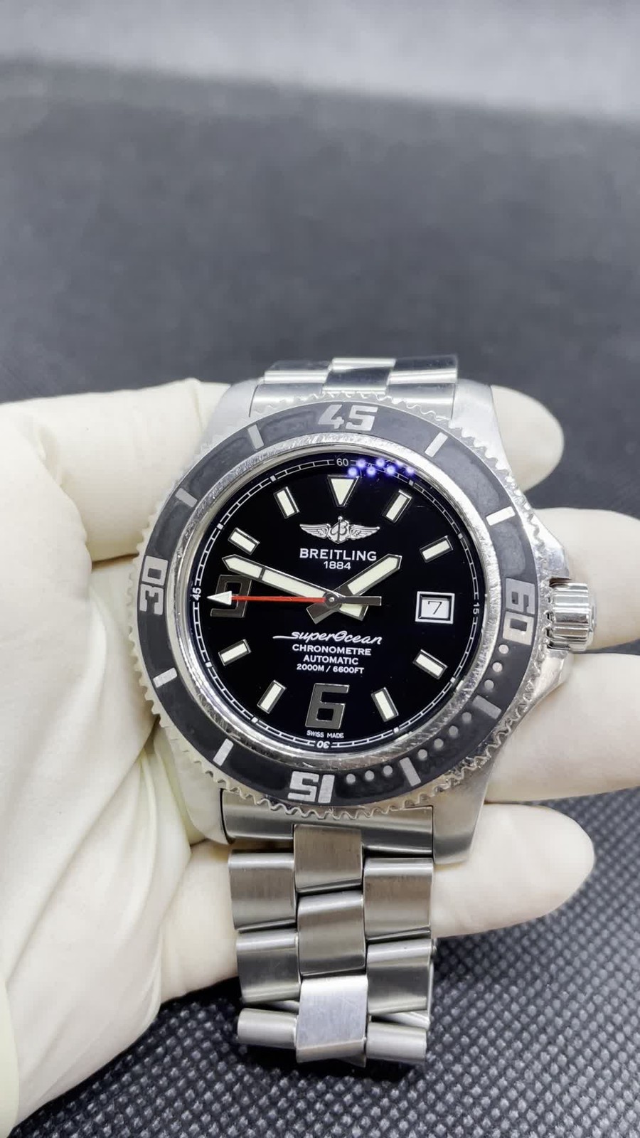 BRANDS ROLEX OMEGA TAG Heuer SEIKO Cartier Others BREITLING Superocean A17391 Black Dial Automatic Men's Product Details Brand BREITLING Model Superocean Gender Men's Material Stainless steel / Stainless steel Dial color Black Movement Automatic Ref Number A17391 Serial Number undefined Accessories Warranty Card: With Manual: With Exclusive Box: With Case size About 43.8mm(1.7inch) Wrist size About 17cm(6.7inch) Lugs width 21.5mm(0.8inch) Keeping time undefinedsec/day State of the wound Glass No damage Case A few scratches Bezel Light scratch Belt/Bracelet A few scratches Hand No damage Dial No damage Crown A few scratches, Light scratch Buckle A few scratches CL Number C0310-W002 Condition Rank Body rank B+ Belt/Bracelet rank AB Condition Rank Explanation N [Mint] Item has never been used. S [Beautiful] Item is like new withvery slight signs of use. A [Excellent] Item has clearly been used,but has no significant scratches or wear. AB [Great] Item has slight surface scratches or slight wear,but looks great. B [Good] Item shows scratches or wear that is visible when worn on wrist. BC [Fair] Item is not in perfect working order or slightly damaged. C [Poor] Item cannot be used as-is.Repair needed or used as parts. Request for Confirmation We carefully inspect the condition of our watches and provide detailed descriptions of their condition. Please make sure to carefully review the condition and details before making a purchase. We occasionally receive returns due to reasons that were clearly stated in the product description. Examples: ・ The bracelet size was different from what I expected. ・ The case size was different from what I expected. All of these details are accurately listed in the product description. We kindly ask for your understanding and attention to these details before purchasing. About accessories Our policy . twe take photo of boxes and warranty cards if watch include box and guaratee card Therefore, if there is no description in the accessory of item and there is no picture of the accessory in our item description, only the wrist watch is available. Shipping Free Shipping Worldwide. -【Expedited】FedEX, DHL or EMS (can't choose carrier) Ship within 2-3 days with tracking number and insure International Buyers - Please Note: Import duties, taxes, and charges are not included in the item price or shipping cost. These charges are the buyer's responsibility. Please check with your country's customs office to determine what these additional costs will be prior to bidding or buying. Customs fees are normally charged by the shipping company or collected when you pick the item up. These fees are not additional shipping charges. We won't under-value merchandise or mark the item as a gift on customs forms. Doing that is against U.S. and international laws. About Authenticity All our items are 100% authentic. They have been inspected by brand specialists. As every seller dealing with pre-owned branded items in Japan we have as well license from local government to offer services of this kind. We are officially registered as legal business and we have to comply with all rules and regulations including tax requirements from the Japanese government. Repair We fully check the watch condition before we ship. When you find any problem , please conatct to us first. Because we can't pay buyer's repair cost. We do not accept negotiations regarding repair prices We accept the return for 2 weeks after customer received our item. We are serious about solving the problem. If you have any problems, please contact us. We may be able to make good suggestions.
