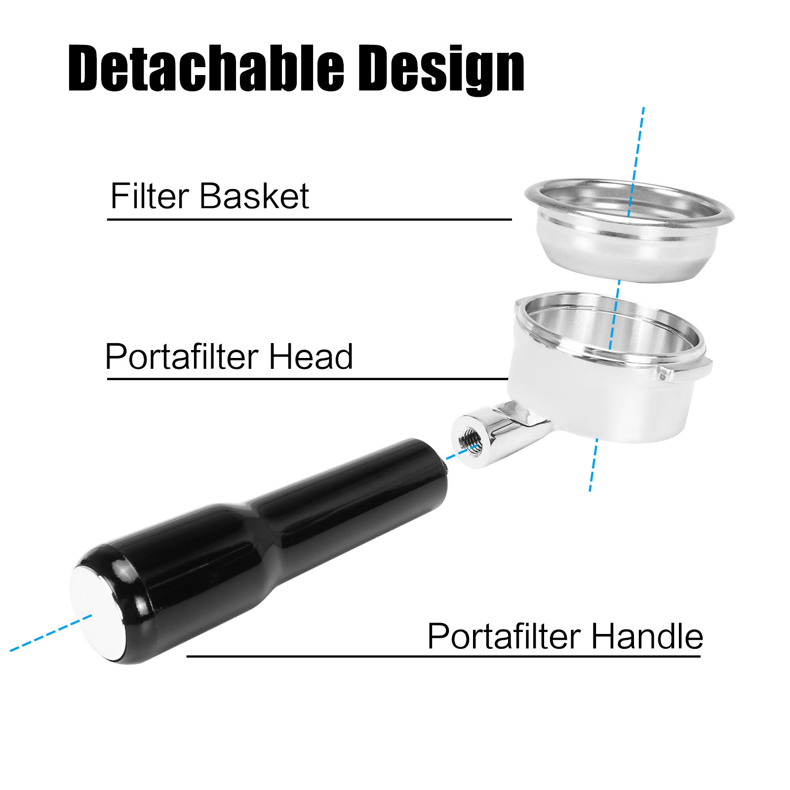 Coffee Tamper Bottomless Portafilter For Breville BES920XL BES900XL Leveler Tool 58mm Coffee Bottomless Portafilter --Fitment: This bottomless portafilter compatible with Breville Dual Boiler BES920XL , BES920CBXL , BES920BSXL , BES900XL. Other machines are not applicable. --Come with Removable 58mm Filter Basket: Detachable design, it is easy to use, clean and replacement. 58.5mm Coffee Tamper --Compatible Portafilter: For 58mm Coffee Portafilter. --Spring Loaded Coffee Tamper: The Coffee Tamper featuring a 30lb spring, applies direct pressure to your ground coffee, ensuring a consistently balanced espresso shot without the need for additional adjustments. --High-quality: The coffee tamper is made of a SUS304 stainless steel base with an Aluminum alloy handle. It has a detachable design and is easy to clean. Description: Material: Solid Food 304 Stainless Steel Base+Aluminum Handle Color: Black Bottomless Portafilter diameter: 58mm Coffee Tamper Base diameter: 58.5mm Package: 1 Set (Coffee Portafilter+Tamper)