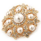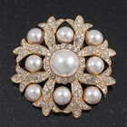 Bridal Swarovski Crystal/ Simulated Pearl Corsage Brooch In Gold Plating - 5cm Diameter Lots of ensemble casts have a breakout star. Meet your jewellery box's newest standout in this dazzling brooch. Whimsical design and serious shine make it a well-rounded complement to scarves, tops and dresses that nevertheless earns the style spotlight. The brooch crafted in gold plated metal and heavily encrusted with clear Swarovski crystals and alternated round pearls. The brooch measures about 5cm in diameter, fastens with a flag pin and revolver. Murzana offers a great selection of fashion and costume jewellery: affordable everyday necklaces, chokers, bracelets, bangles, armlets, rings, earrings, brooches, hair jewellery and other accessories. We invite you to check our whole range and decide on your favourite items by adding the them to your wish list or straight to your basket! Bridal Swarovski Crystal/ Simulated Pearl Corsage Brooch In Gold Plating - 5cm Diameter product code: B02410 occasion: bridal, cocktail party, going to theatre metal finish: gold plated gemstone: faux pearl, diamante collection: pearl wear on: lapel, apparel, bag fastening: rotating pin clasp diameter: 5.0cm (1.97") weight: 18g (0.63oz) DESCRIPTION Lots of ensemble casts have a breakout star. Meet your jewellery box's newest standout in this dazzling brooch. Whimsical design and serious shine make it a well-rounded complement to scarves, tops and dresses that nevertheless earns the style spotlight. The brooch crafted in gold plated metal and heavily encrusted with clear Swarovski crystals and alternated round pearls. The brooch measures about 5cm in diameter, fastens with a flag pin and revolver. ALTERNATIVE VIEWS OUR PROMISE We take every effort to ensure that you receive a product without any defects or faults. On a rare occasion where the item was damaged during shipment or there is a manufacturing fault, please contact us to arrange a free return. We will refund you for the faulty item and its postage so that you are never left out of pocket. PAYMENT We accept all standard payments that are facilitated by Ebay. ORDERING AND SHIPPING We deliver world-wide using Royal Mail services. Your order will be dispatched on the same working day if we receive your payment by 2pm (UK time). Items purchased after 2pm on Friday and on the weekend will be shipped on the following Monday. For shipments outside of the UK we can combine your shipping costs for multiple items, so that you pay just one shipping cost for the entire order. Please request a total from us by clicking on a relevant link at the checkout. RETURNS You may return this product for a full refund within days of purchase date. Please follow our returns procedure to return the goods. CUSTOMER SERVICE AND FEEDBACK We are committed to provide the best customer service and to deliver 100% customer satisfaction . If for any reason you are not satisfied with your purchase, please contact us first before leaving a negative feedback. We strongly believe that all issues can be resolved in a positive way.