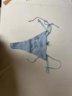 This luxurious bridal tanga thong from Skims, in a beautiful glacial blue color, is designed for comfort and elegance. Made with 92% silk and 8% spandex, it provides a perfect fit and a soft feel against the skin. Ideal for special occasions, it features adjustable ties for added convenience. Experience the ultimate in bridal lingerie with this exquisite piece.