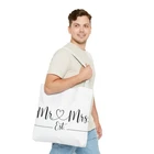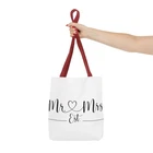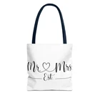 Available in 3 sizes to add both functionality and style, these custom-printed tote bags come with multiple handle colors to match your designs. Made with spun polyester, these bags feature double-stitched seams, cotton webbing straps, and nonwoven laminate lining for high-end durability. Your all-over print is created with dye sublimation for high-end visuals. .: Made with 100% polyester, a medium-weight fabric (6.49 oz/yd² (200 g/m²)) that is highly durable and perfect for everyday use. .: 5 color handle options .: All tote bags come with a non-woven laminate inside, cotton handle, and are available in 3 sizes (1x large storage compartment) so that you can match your customers' needs. .: NB! Size tolerance 0.75" (1.9cm) EU representative : HONSON VENTURES LIMITED, 3, Gnaftis House flat 102, Limassol, Mesa Geitonia, 4003, CY Product information : Generic brand, 2 year warranty in EU and Northern Ireland as per Directive 1999/44/EC Care instructions : Remove all items from the bag before cleaning. Suggested to pretreat visible stains with stain remover. Mix warm water with laundry detergent and clean the bag with terry washcloth or a soft bristle brush. Let the bag air dry.
