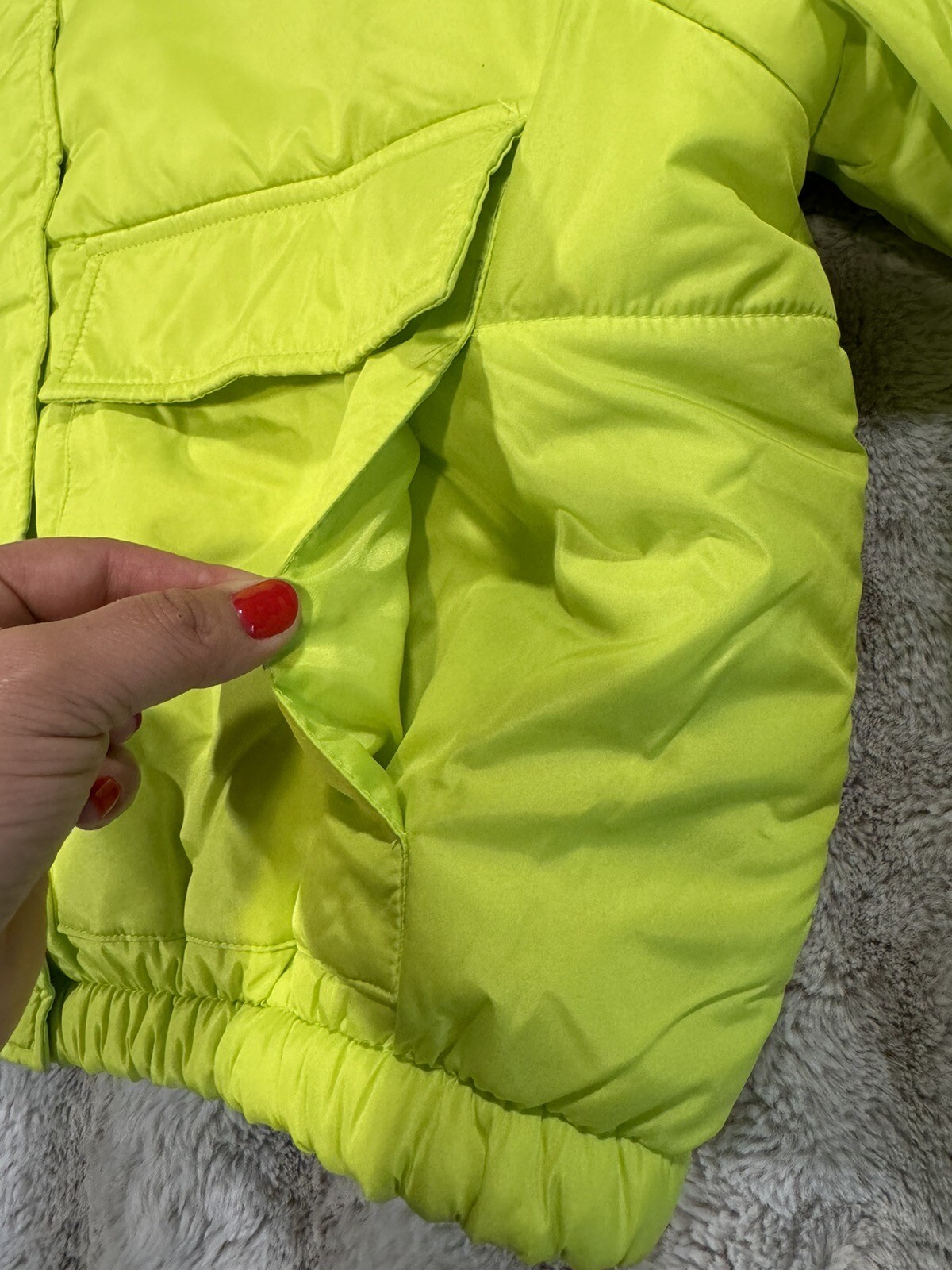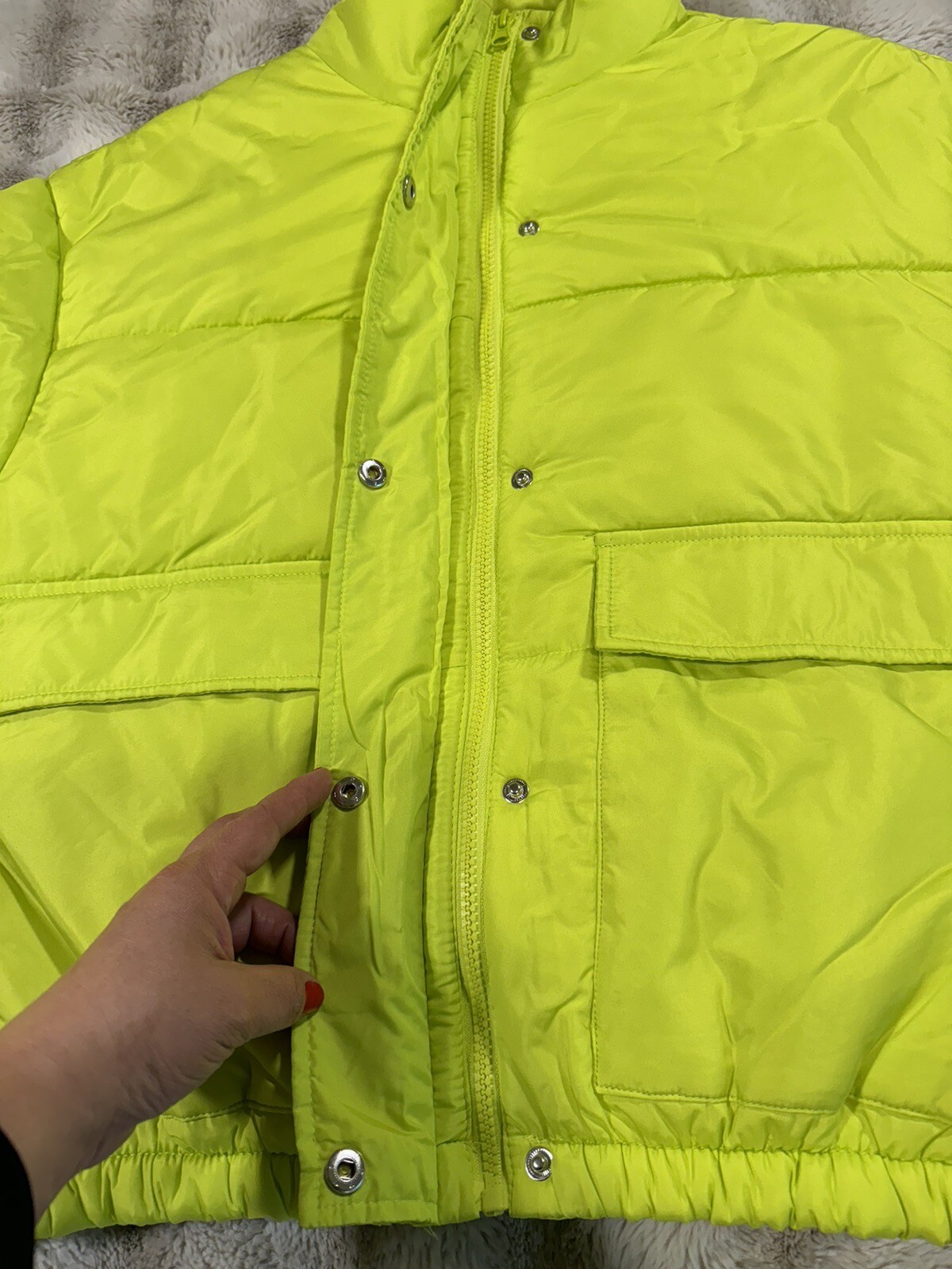 This bright green puffer jacket is a total win! The color is so vibrant and fun, perfect for standing out in a crowd. It’s super warm and cozy, yet lightweight enough for easy layering. The fit is just right—roomy but not bulky—and the quality feels great for the price. Love that it comes with tags and ships fast! Definitely a must-have for chilly days.