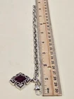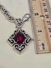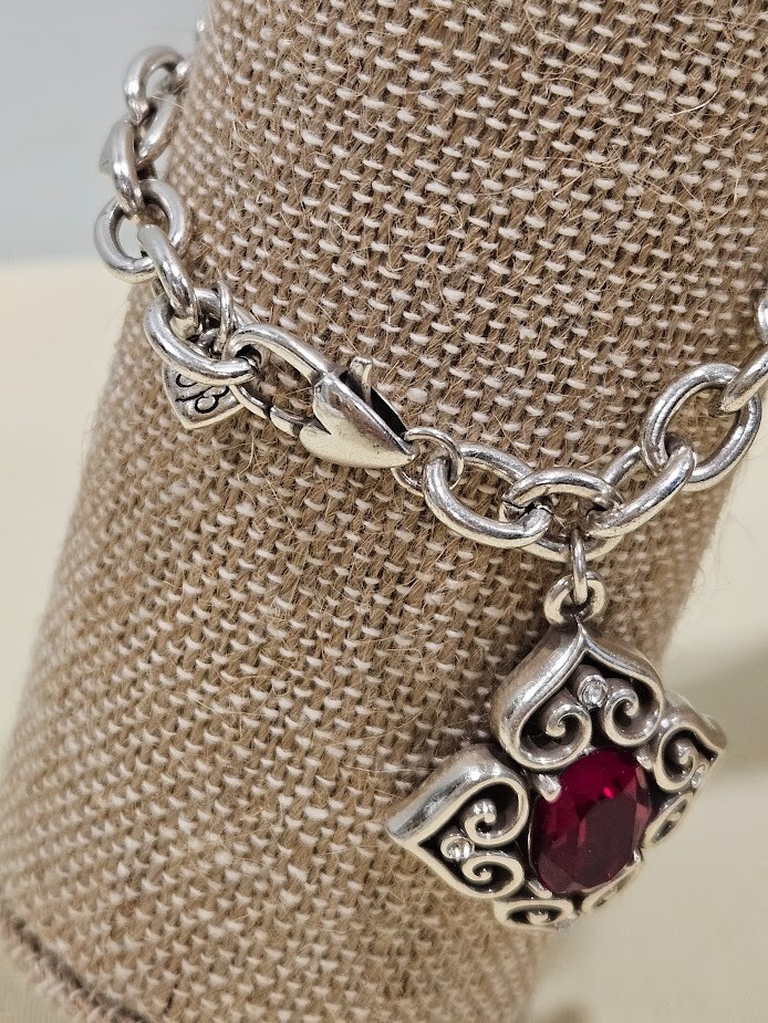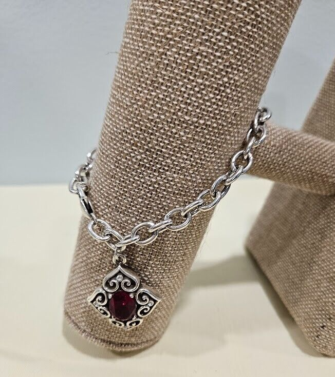Brighton Alcazar Blaze Red Crystal Silver Plated Bracelet. This asymmetrical chain bracelet features a lobster claw closure and a beautiful oval-shaped red crystal. Signed by Brighton. Care for Brighton jewelry: gently wipe them clean with a soft cloth and mild soap solution. Avoid exposing your piece to harsh chemicals or abrasive materials, as these can damage the finish . Ships from a smoke free home! Please see all photos for exact item condition. Thank you for checking out my store! All items are shipped within 1 or 2 business days. Make a bundle to save on shipping cost.